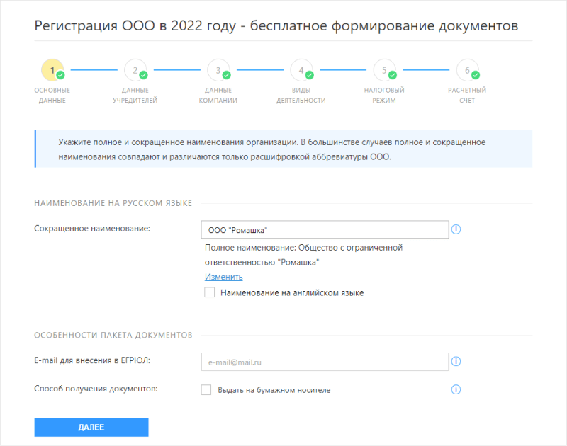 Сервис сформирует нужные документы, которые будут поданы онлайн.