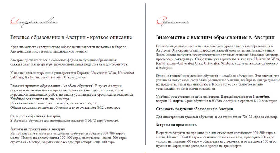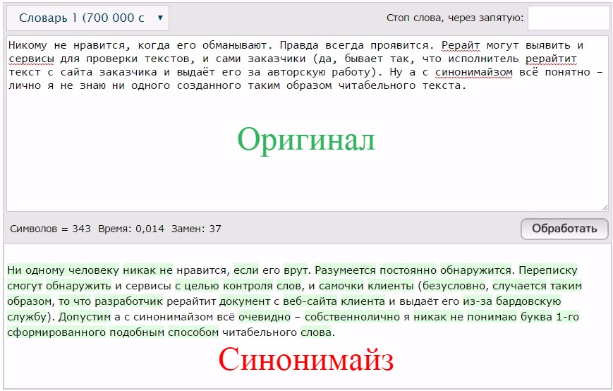 Не путайте рерайт с обычной проверкой на грамотность, опечатки или с избавлением от «воды». Главная цель рерайтера — превратить «чужой» неуникальный текст в собственный, уникальный и оригинальный.