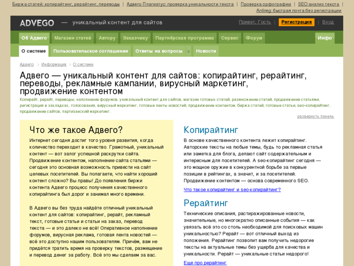 Вот в этот момент и потребовались навыки копирайтеров и рерайтеров, людей, которые умеют писать уникальный текст. Не просто уникальный, а несущий полезную информацию для посетителя.