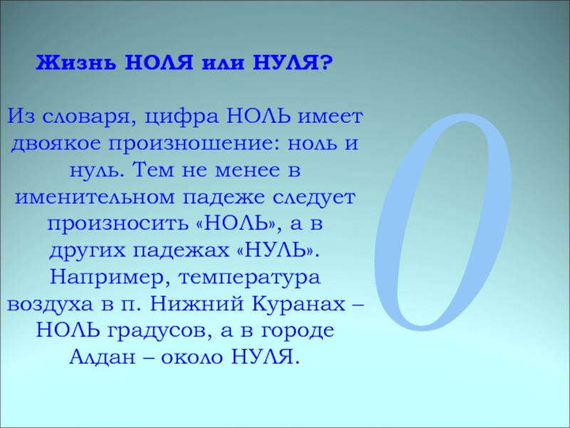 Нуль или ноль – как правильно говорить и писать? Равно нулю или равно нолю? Больше ноля или нуля? Меньше нуля или ноля? Два или три ноля или нуля?
