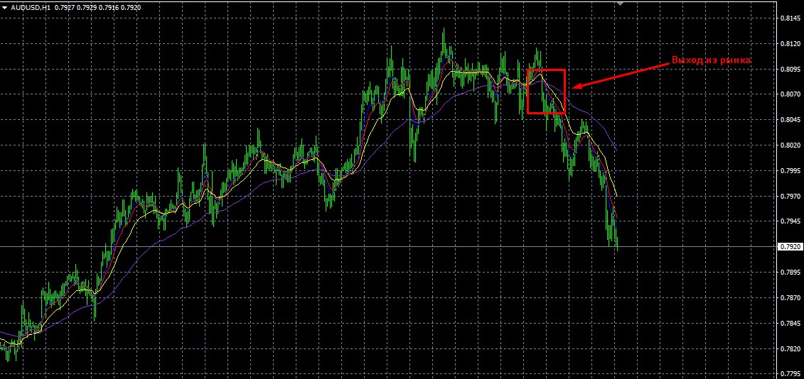 Выход, закрытие ордера: при их пересечении в обратном направлении. Что интересно, это очень простая ТС, достаточно «старая», но тем не менее эффективная.