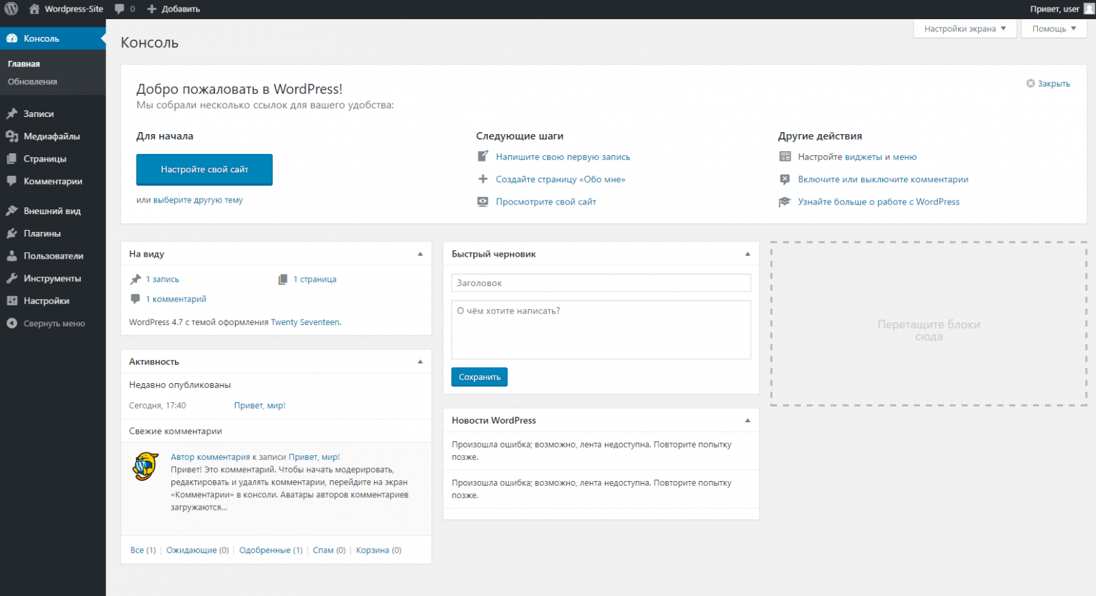 Шаг 3. Добавьте свой первый пост