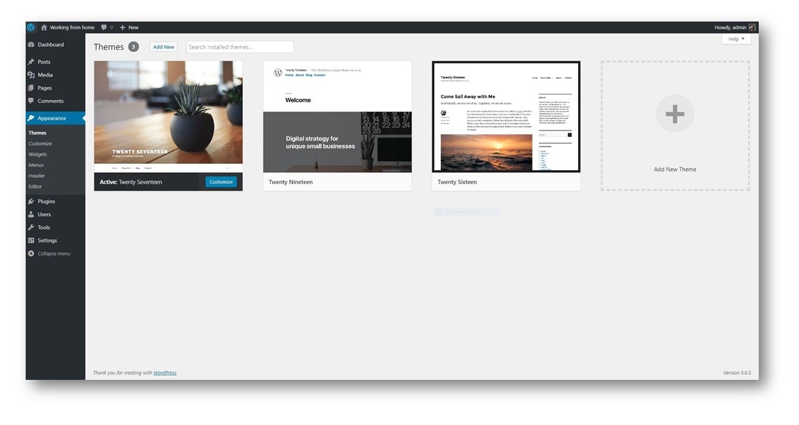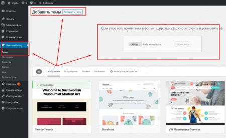 Следующим шагом является установка темы WordPress. Перейдем к Внешний вид > Темы .
