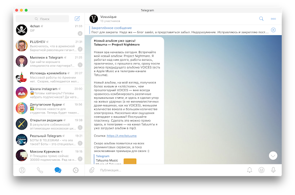 Там же он пояснил о планах компании и сказал, что не собирается продавать компанию, как это сделали основатели WhatsApp. Telegram нужен миру как независимый проект, и именно поэтому монетизация — неизбежный шаг в развитии мессенджера.