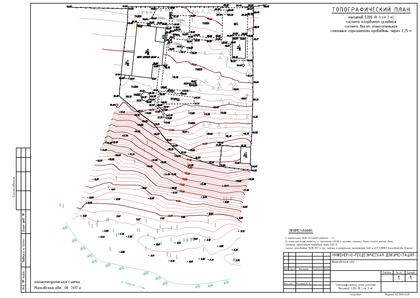 Главное понять суть этого плана и отличие его от других (например поэтажного плана, ситуационного плана и т.д ). Чтобы его составить, необходимо провести топографическую съемку. Итак, топоплан -это чертеж элементов ситуации, рельефа местности и прочих объектов с их метрическими и техническими характеристиками, выполненное в утвержденных условных знаках . Главная особенность- это его высотная составляющая. То есть в любом месте топографического плана можно определить высоту изображенного там объекта. Помимо высоты, на топоплане можно измерить координаты и линейные размеры объектов, учитывая масштаб, конечно. Все эти данные можно получить как с бумажной копии, так и с цифровой. Обычно подготавливаются оба варианта. Поэтому топографический план, помимо наглядного изображения местности, является отправной точкой для проектирования и моделирования.