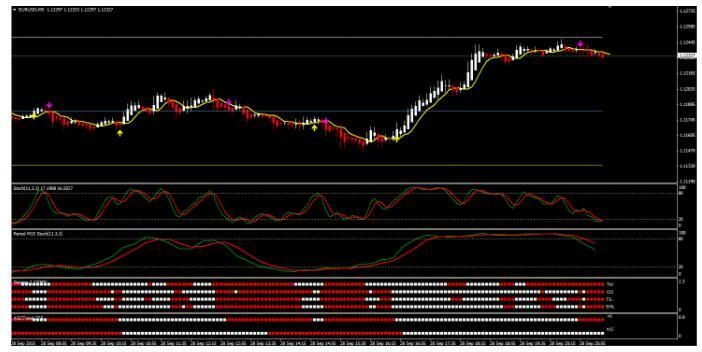 И еще одно условие, если стоплосс составляет более 50 пунктов, игнорируем сделку. В качестве активов используются валютные пары с японской йеной. Если линии Stoch уже расположены в зоне перепроданности , сделка не заключается.