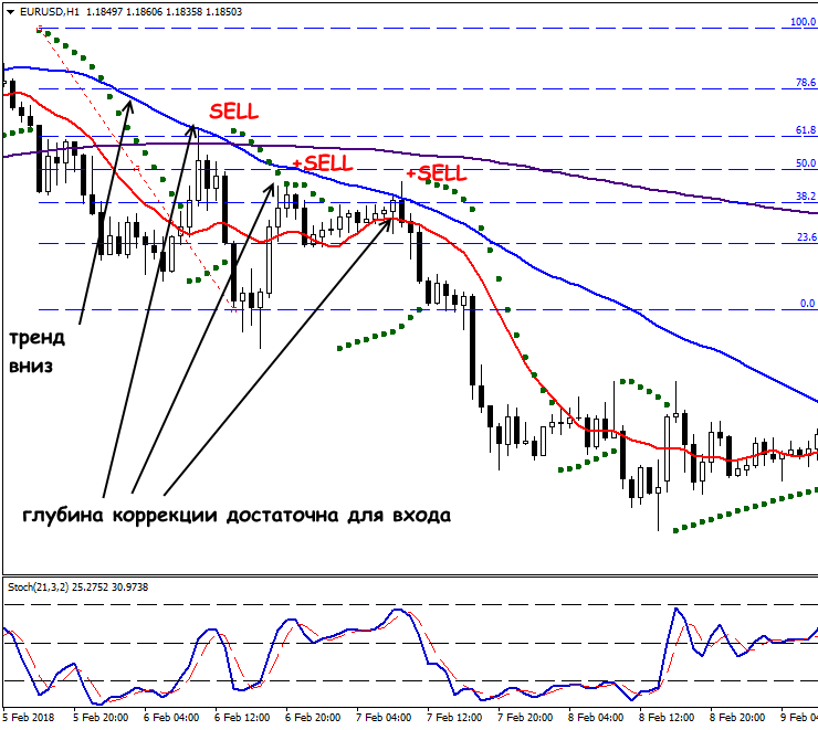Кстати, компания Alpari, о которой упоминалось выше, предлагает новичкам бесплатные оффлайн-консультации (у брокера есть офисы практически во всех крупных городах), где как раз делается упор на торговлю от уровней. Преимущественно эту стратегию используют трейдеры, которые торгуют в ценовом коридоре. Простейшей трендовой стратегией является вход в позицию при пересечении двух линий – быстрой и медленной скользящей.
