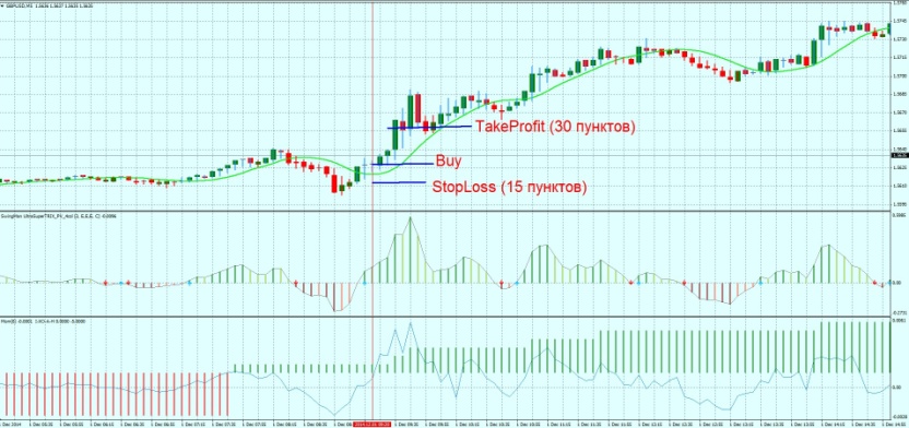 Сделки нужно открывать в первые 30 минут после открытия лондонской сессии. Таймфрейм графика – 30-минутный.