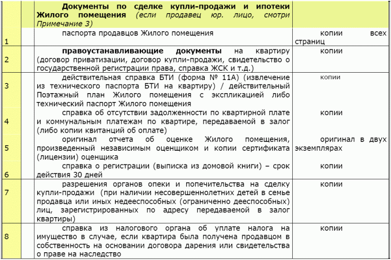 Документы на недвижимость, на которую требуется ипотека (нужно запросить у продавца/застройщика). -
