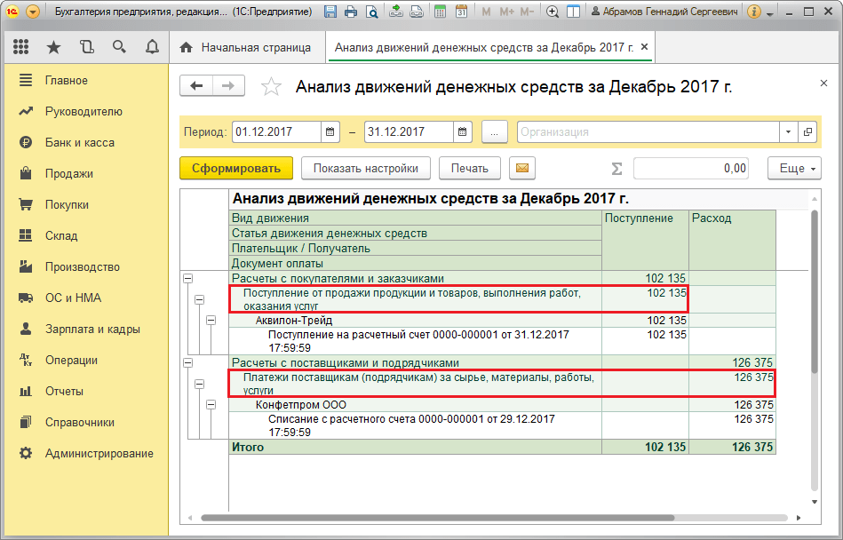 Порядок заполнения и представления таких документов регламентируется отдельными законодательными актами. Английское название — Cash Flow Statement. Если проводить параллели с балансовым отчетом, где отражается финансовое состояние предприятия, в ОДДС разъясняются изменения, которые произошли с одним из главных элементов деятельности — денежными средствами. Наш эксперт перезвонит вам через 10 минут, уточнит на какой системе 1С вы хотите опробовать продукт (1С:ERP, 1С:УТ, 1С:Бухгалтерия 8, 1С:УПП или 1С:КА) и проконсультирует по всем вопросам. data-form-submit=Заказать Тест-драйв> Корректировки закрытого периода — устанавливается в проводку автоматически, если движения сформированы с помощью механизма закрытого периода; В отличие от Бухгалтерского баланса и Отчета о прибылях и убытках, Отчет о движении денежных средство составляют не все организации, ведущие бухгалтерский учет. Организации #8212; субъекты малого предпринимательства могут не составлять данный отчет, если сочтут, что он не содержит важной для оценки их деятельности показателей.