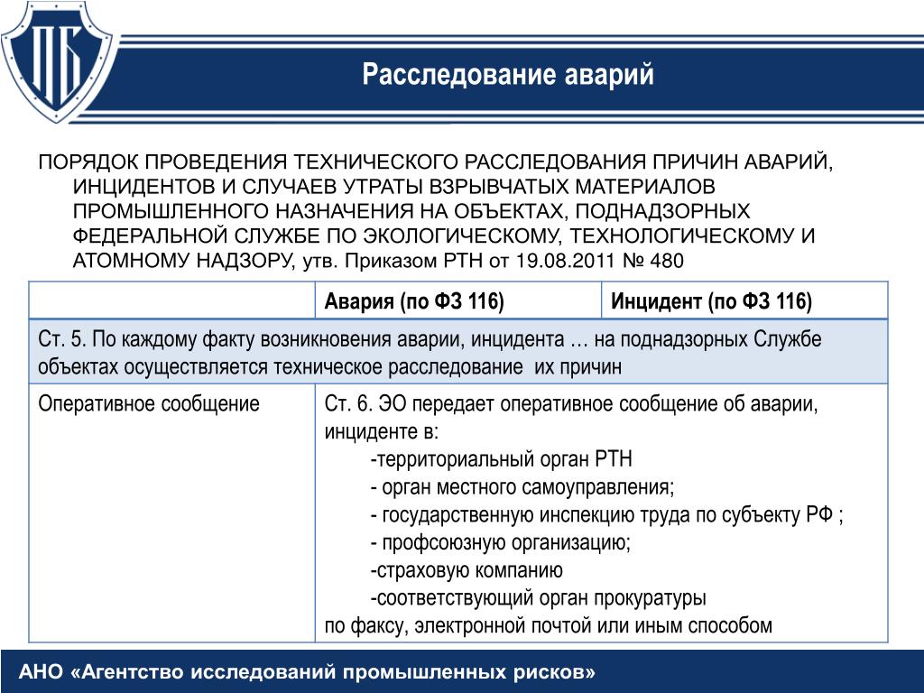 Федерального закона от 21.07.1997 N 116-ФЗ «О промышленной безопасности