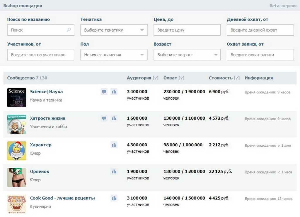 Чем больше участников паблика, тем выше стоимость рекламы.