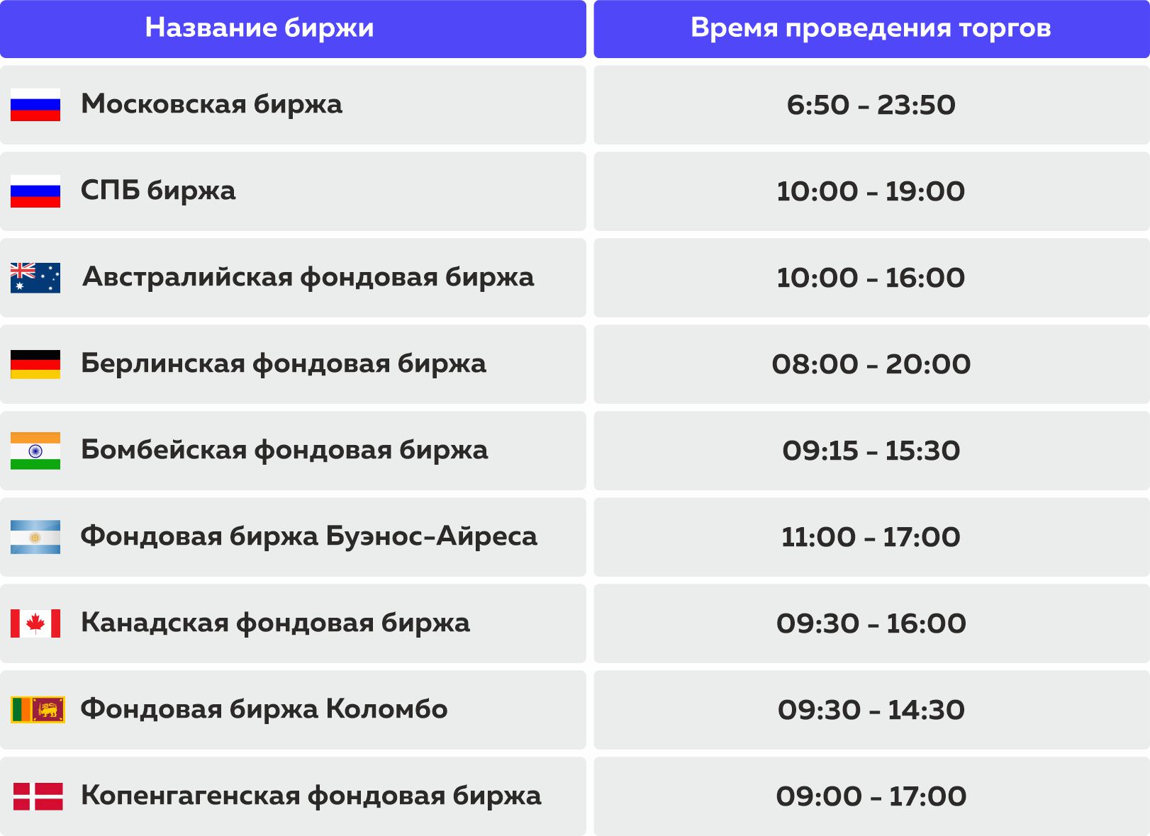 На ведущей российской биржевой площадке — Мосбирже — ценные бумаги, валюта и деривативы также торгуются по расписанию. Хотите узнать, по какому графику действует крупнейший организатор торгов, сколько рабочих сессий на московской бирже — читайте наш материал.
