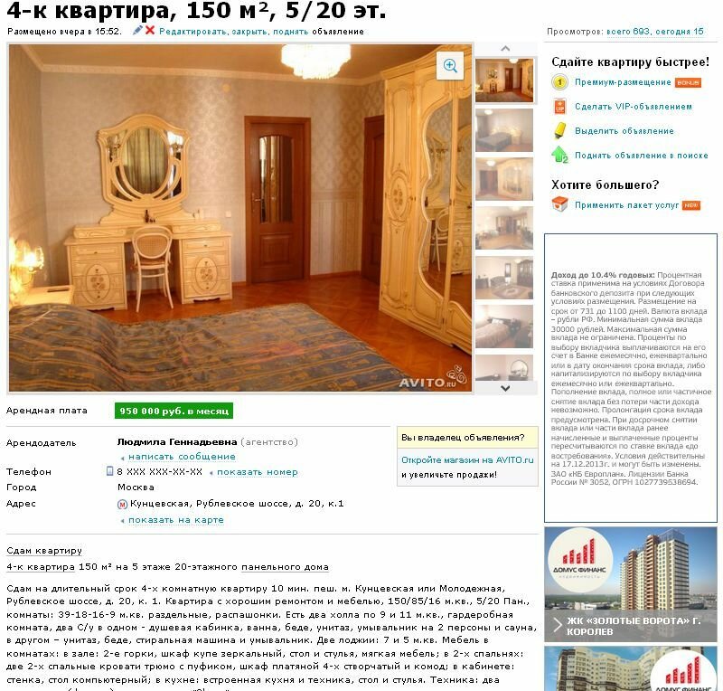 Так же есть предложения, где просто чистое разводилово на деньги. Облапошила риелторская контора на 10 тысяч ₽, оставлена жалоба — реакции от яндекса нет, предложение всё ещё висит, но на него уже просто не берут трубку.