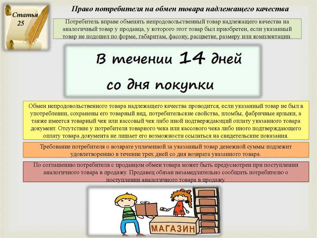 Вопросы подобного характера регламентированы Законом РФ «О защите прав потребителей» и Постановлением Правительства РФ от 27.